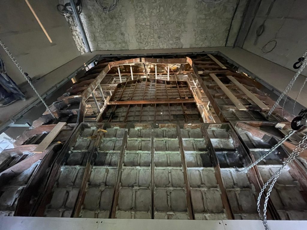 Sebbene sia stato concordato che gli interni sarebbero stati ricostruiti in un’altra posizione, l’imponente arredamento è rimasto in magazzino quasi cento anni.