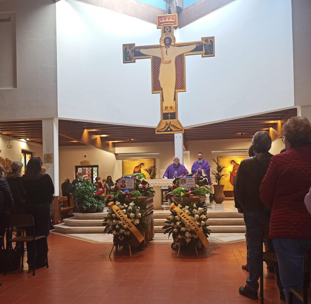 Il rito funebre è stato concelebrato dal vescovo Vincenzo Apicella e il parroco don Andrea Pacchiarotti. Le due bare erano già davanti all’altare ancor prima dell’orario d’inizio previsto per le 15,30, con sopra i cuscini di fiori dei figli e davanti le due coroncine dedicate dalla nipotina Aurora, ma soprattutto circondate dall’affetto dei figli e dalla partecipazione significativa da parte di quanti hanno conosciuto Paolo e Lucia.