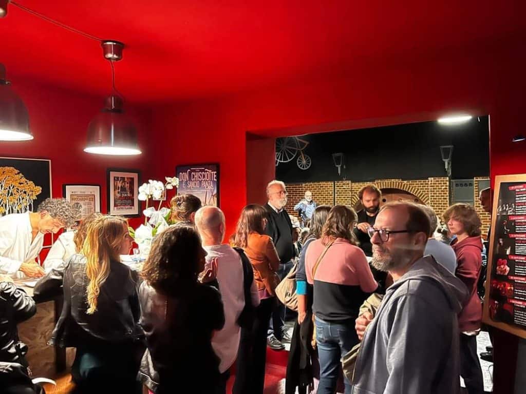 Un ambiente che si fa epicentro di un senso di unione tra artisti e amanti dell’arte che, nel varcare la soglia d’ingresso, hanno la possibilità di immergersi all’interno di un’atmosfera “sospesa”. Vecchie scenografie di spettacoli passati, opera dello scenografo e artista di fama internazionale Sergio Gotti, si fanno ora pareti, cornici della realtà quotidiana, della ricca commedia umana e dell’eterea finzione scenica.