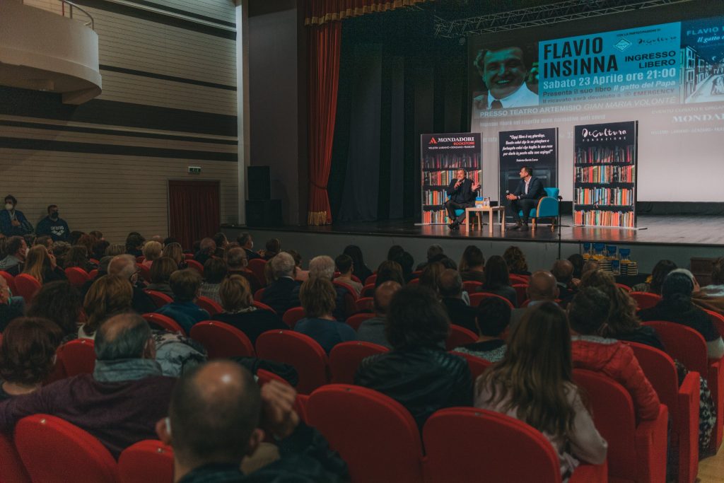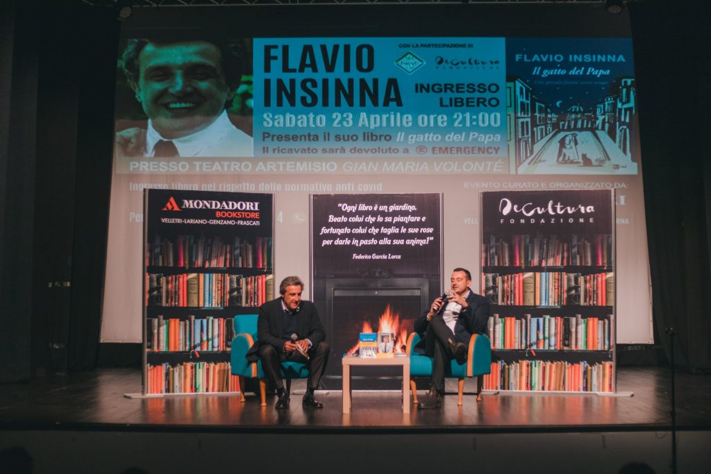 Cosa succederebbe se il Papa, per di più allergico ai gatti, incontrasse un felino che gli parla e gli dà consigli? Quella di Flavio Insinna è certamente una favola, sin dal suo principio, che però affronta tutte le più spinose tematiche sociali, civili e anche politiche. “Il gatto del Papa”, edito da Rai Libri, ha richiamato un nutritissimo pubblico al Teatro Artemisio-Volonté nell’evento targato Mondadori Bookstore Velletri in collaborazione con Fondazione De Cultura e Fondarc.