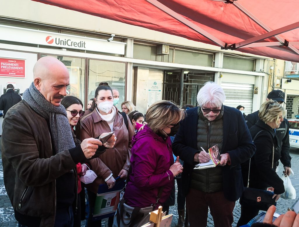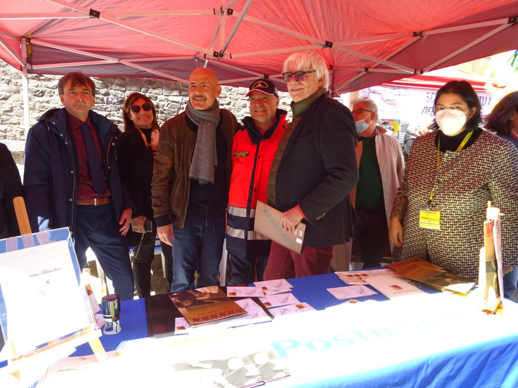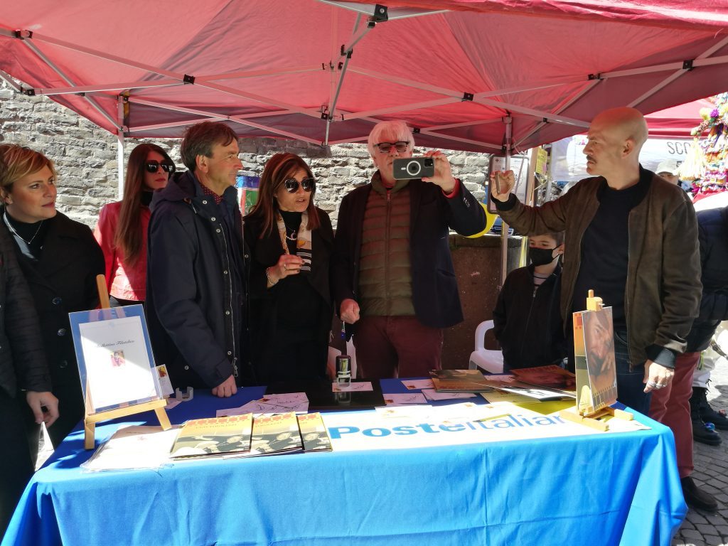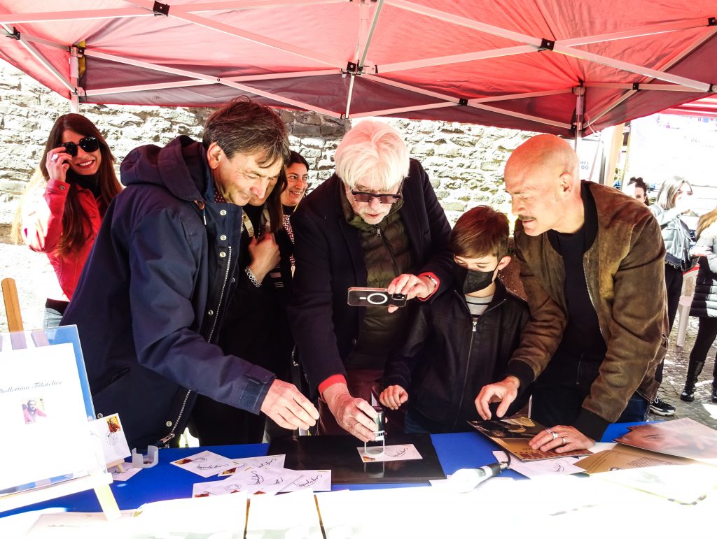 Intorno alle ore 12 di oggi, nello stand delle Poste Italiane, allestito per l’occasione, nel gioioso contesto della Festa delle Camelie, circondati dai molti cittadini che ne richiedevano selfie ed autografi sui francobolli acquistati, sono arrivati prima Ricky Tognazzi che ha dato l’annuncio della particolare importanza riservata al genitore sia Gianmarco che, con la sua solita verve briosa, ne ha abbracciati tanti, incitando anche all’acquisto del ricordo prezioso del “francobollo Ugo”.