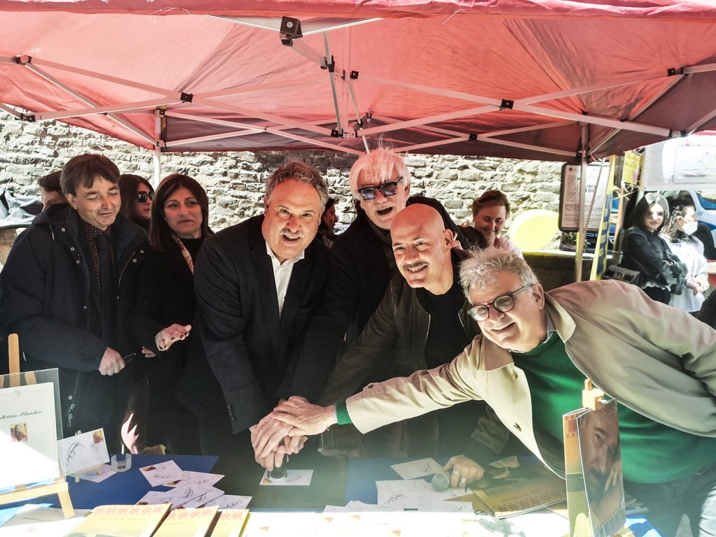A completare la cerimonia che, seppur breve, è stata caratterizzata da una gioia espressa in modo spontaneo dal comportamento “comune” e “normale” dei due grandi artisti, figli di altrettanto grande Ugo, è stata la presenza del sindaco Orlando Pocci.