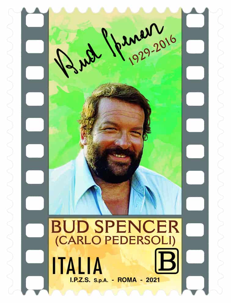 Poste Italiane comunica che il 31 ottobre 2021 è stato emesso dal Ministero dello Sviluppo Economico un francobollo ordinario appartenente alla serie tematica “le Eccellenze italiane dello spettacolo” dedicato a Bud Spencer, relativo al valore della tariffa B pari a 1,10€.